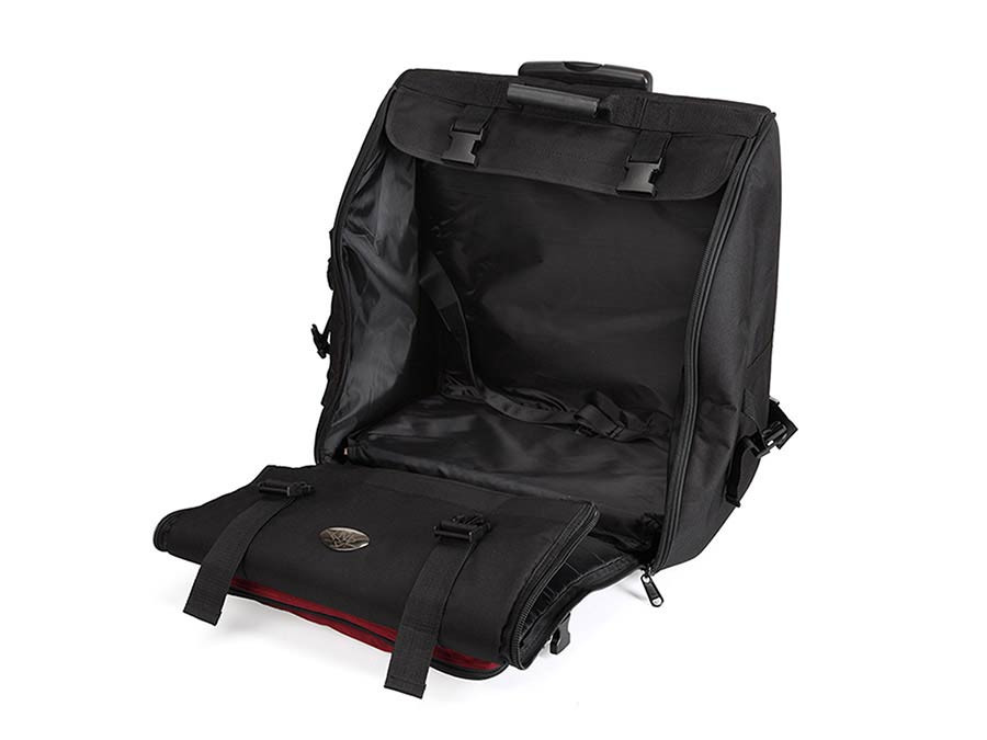 Пътувайте сигурно и удобно с PAB-16120 CNB – калъф за акордеон с колелца, проектиран за сигурност, комфорт и практичност. Със своята елегантна червено-черна визия, този модел комбинира подсилена подплата, джобове за аксесоари и колелца за лесен транспорт.