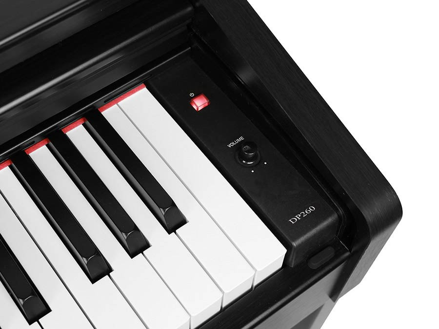A Medeli DP260 egy sokoldalú digitális zongora, amely kezdőknek és haladó zenészeknek egyaránt ideális. Elegáns kialakítása bármilyen térben jól mutat. A 88 súlyozott billentyű és a nagy teljesítményű hangrendszer révén hűen visszaadja az akusztikus zongora érzetét, és hiteles játékélményt nyújt.