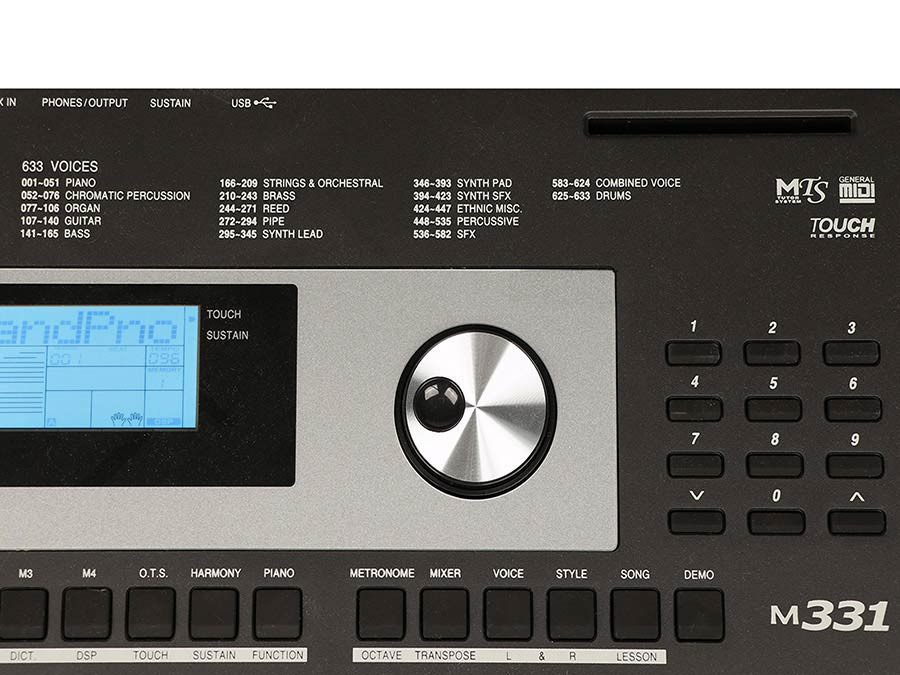 M331 oferă și funcții avansate de înregistrare, permițând stocarea a până la 10 melodii, astfel încât utilizatorii să-și poată asculta și perfecționa interpretările oricând. Conectivitatea extinsă include Aux-In și intrare pentru microfon, astfel încât să poți reda muzica preferată și să cânți live fără efort. În plus, conexiunile USB-MIDI facilitează integrarea cu software-uri de producție muzicală și dispozitive externe.
