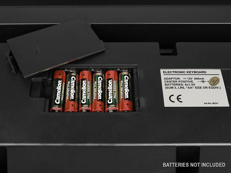 Alimentarea flexibilă permite utilizarea cu adaptor de 12V sau 6 baterii AA, ceea ce face ca M331 să fie ideal pentru utilizare acasă, în deplasare sau în săli de repetiție. Sistemul de sunet este asigurat de difuzoare duale de 3W, care oferă un sunet clar și echilibrat. Cu un design compact și o greutate de doar 5 kg, această claviatură este ușor de transportat și depozitat.